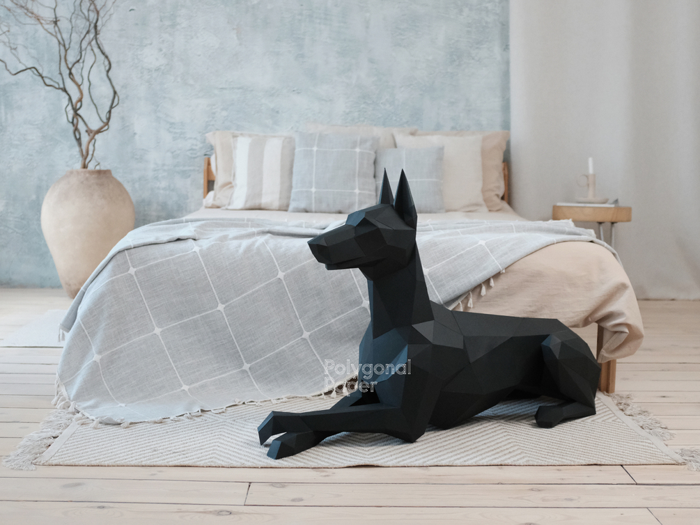 Lying Doberman: Digital Files for Papercraft. PDF, SVG drawings for download.