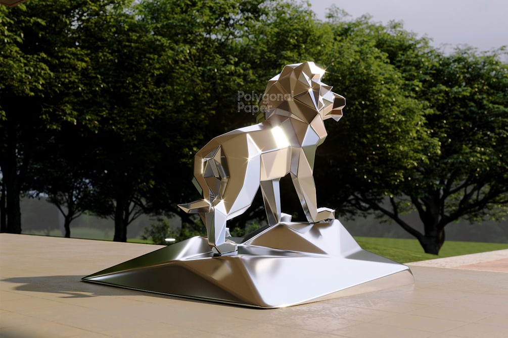 Lion on a Stone: Drawings for Laser Cutting and Welding Polygonal Low Poly Figure from Sheet Metal