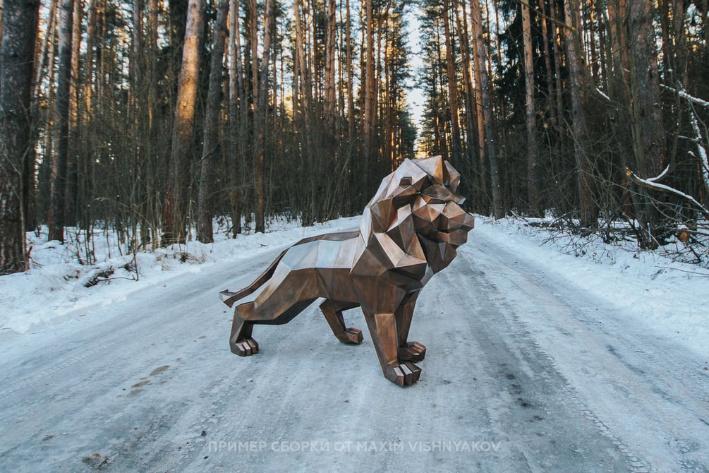 When we designing low poly sculptures for assembly from metal, we take into account the thickness of the sheet metal (1.5 mm) and k-factor (coefficient of displacement during bending). The inner bend radius is 1.5 mm. We try to do all the welding on the outside so that the assembled model is as accurate as possible. We recommend using laser cutting and bending machine. But some of our customers cut and bend parts by hand - it takes much longer. Drawings are suitable for any style of work.