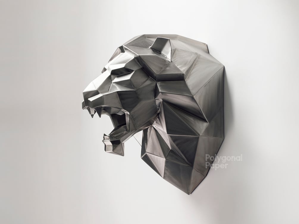 Roaring Lion Head: Drawings for Laser Cutting and Welding Polygonal Low Poly Figure from Sheet Metal