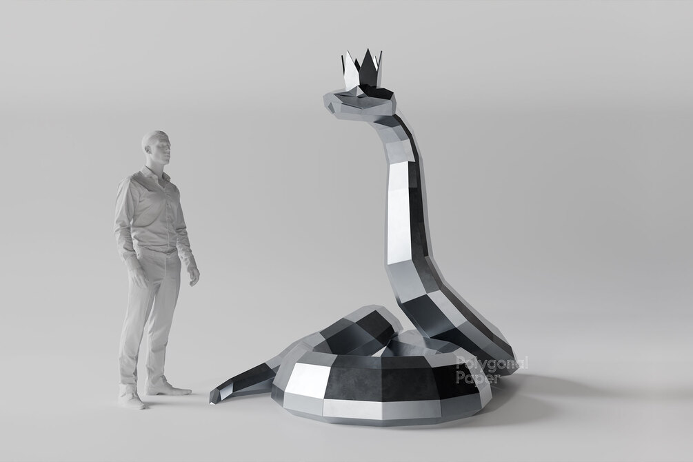 When we designing low poly sculptures for assembly from metal, we take into account the thickness of the sheet metal (1.5 mm) and k-factor (coefficient of displacement during bending). The inner bend radius is 1.5 mm. We try to do all the welding on the outside so that the assembled model is as accurate as possible. We recommend using laser cutting and bending machine. But some of our customers cut and bend parts by hand - it takes much longer. Drawings are suitable for any style of work. Snake is a perfect park sculpture.