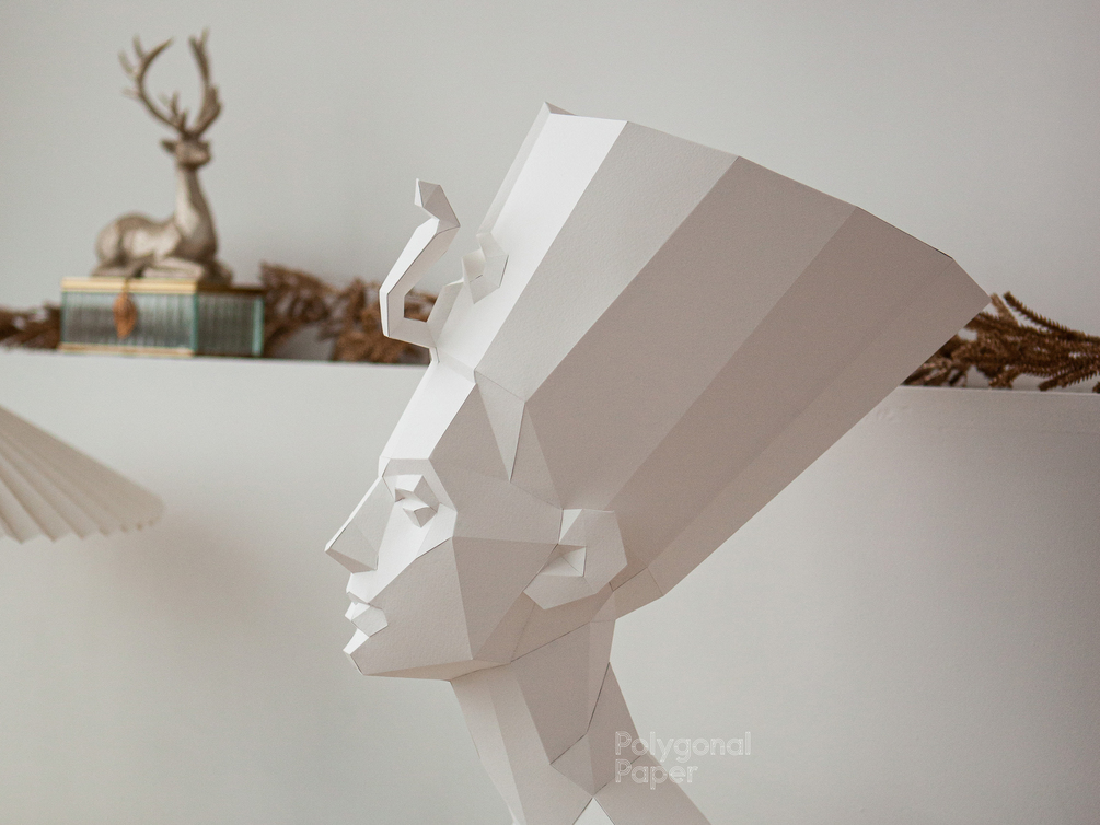 Nefertiti Bust: Digital Files for Papercraft. PDF, SVG Drawings for Assembly Low Poly Sculpture.