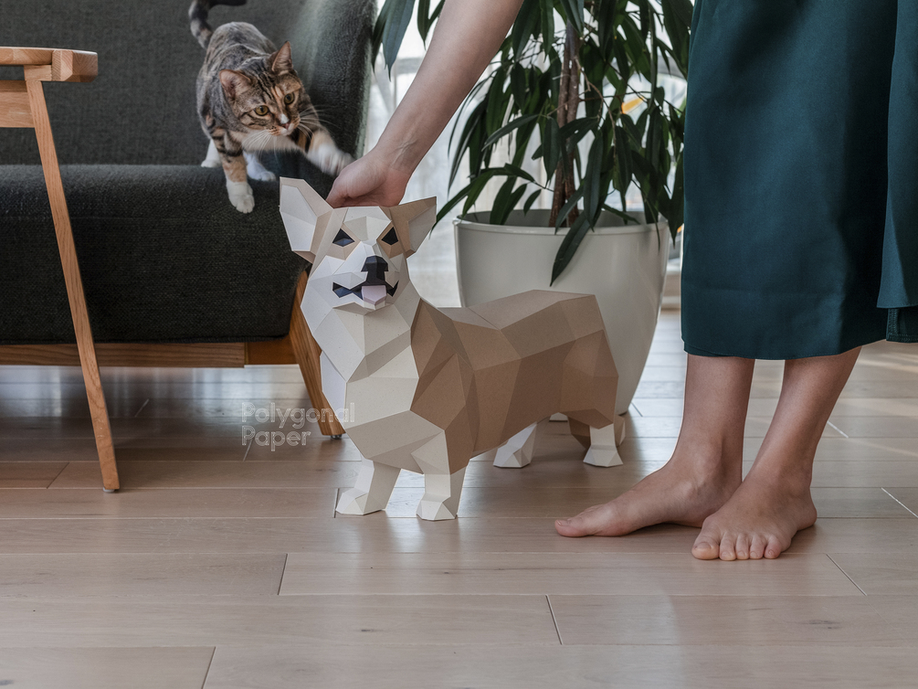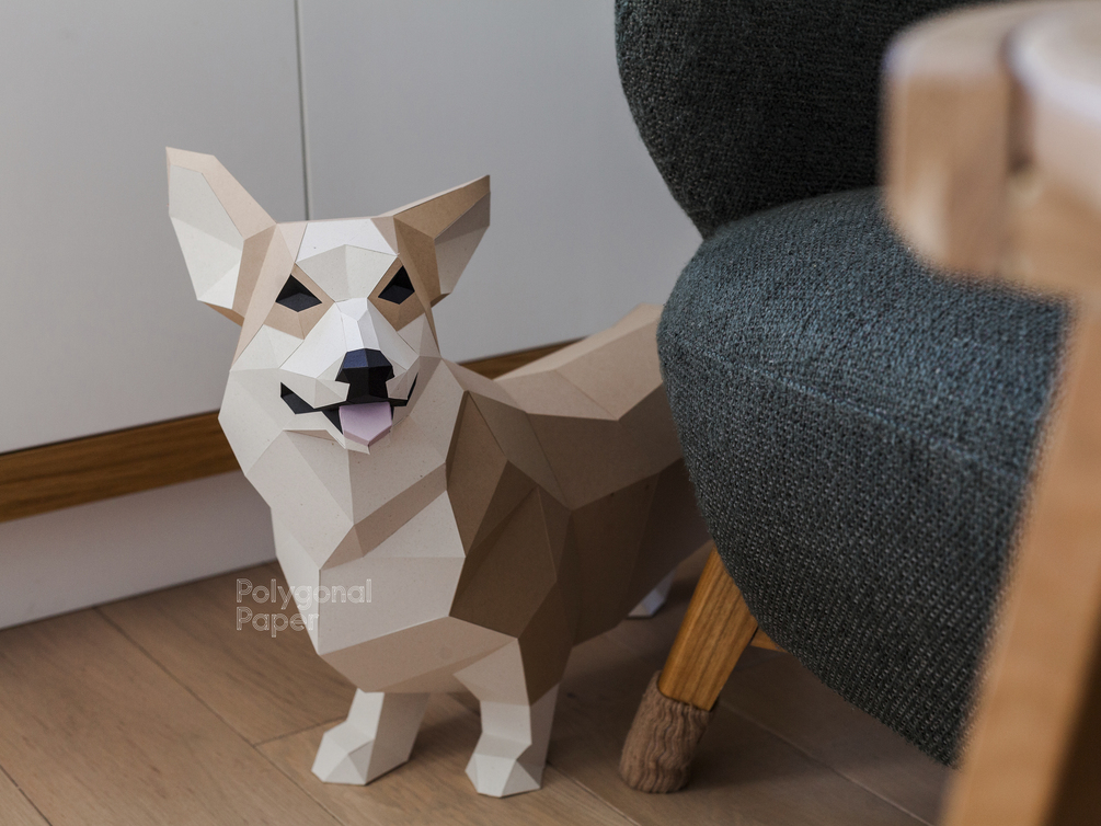 Corgi: Digital Files for Papercraft. DIY template in PDF and SVG format for making sculpture from paper.