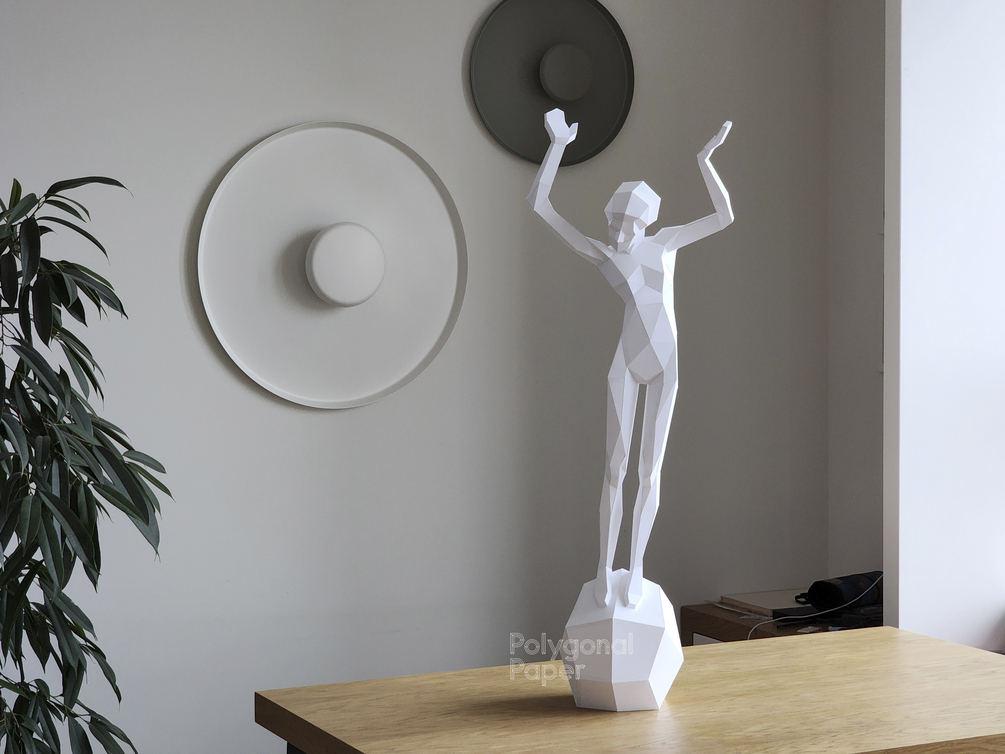 Girl on a Ball: Digital Files for Papercraft. PDF, SVG Drawings for Assembly Low Poly Sculpture.