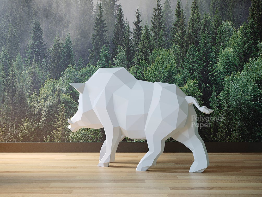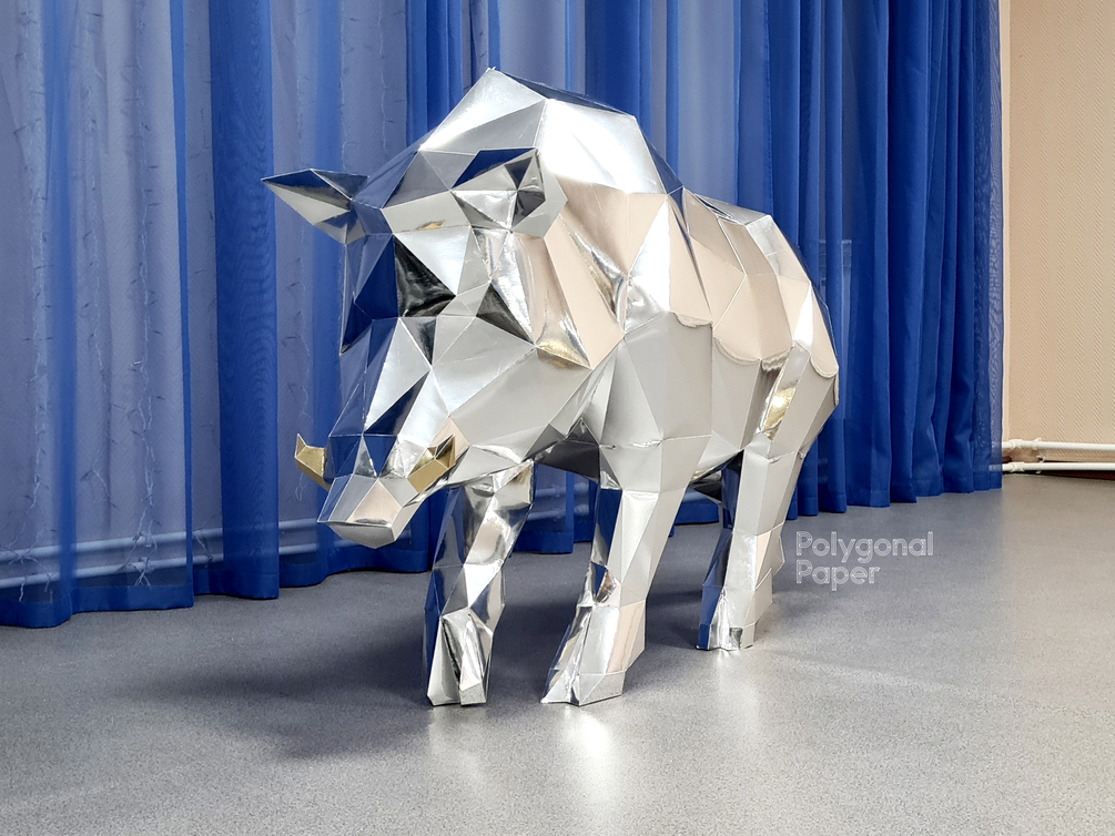 Boar: Digital Files for Papercraft. DIY template in PDF and SVG format for making sculpture from paper.