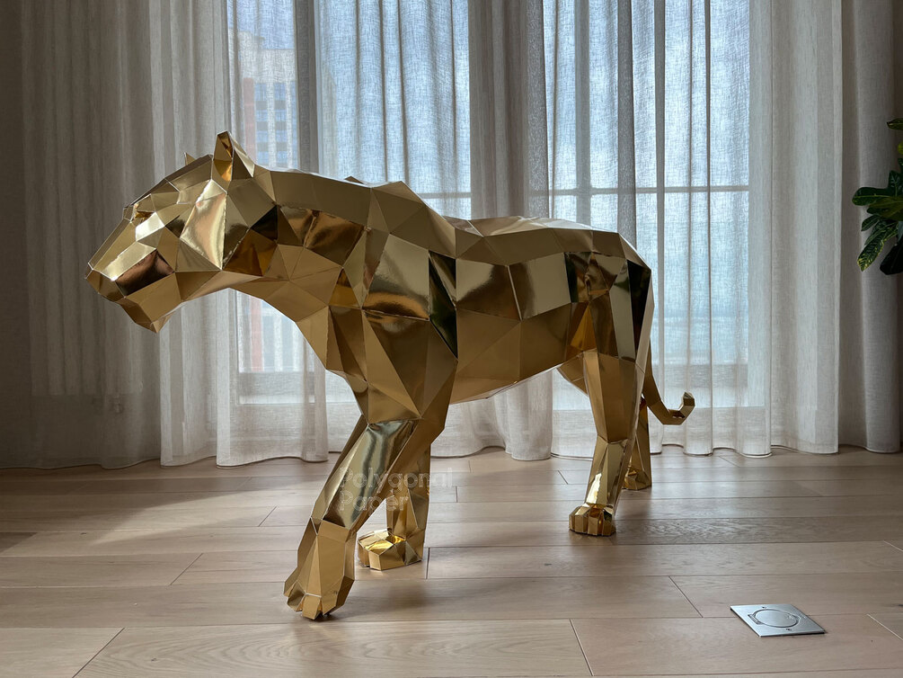 Среди полноразмерных моделей в технике papercraft этот тигр самый продуманный для сборки из бумаги. Удобный формат (можно использовать файлы в формате PDF для печати на принтере, а для владельцев плоттеров Silhouette Cameo или других мы подготовили DXF файлы), приятная графика, понятные иллюстрации к порядку сборки, всё это позволяет сделать склейку полигональной фигуры интересной и последовательной. Время сборки: 40 часов.